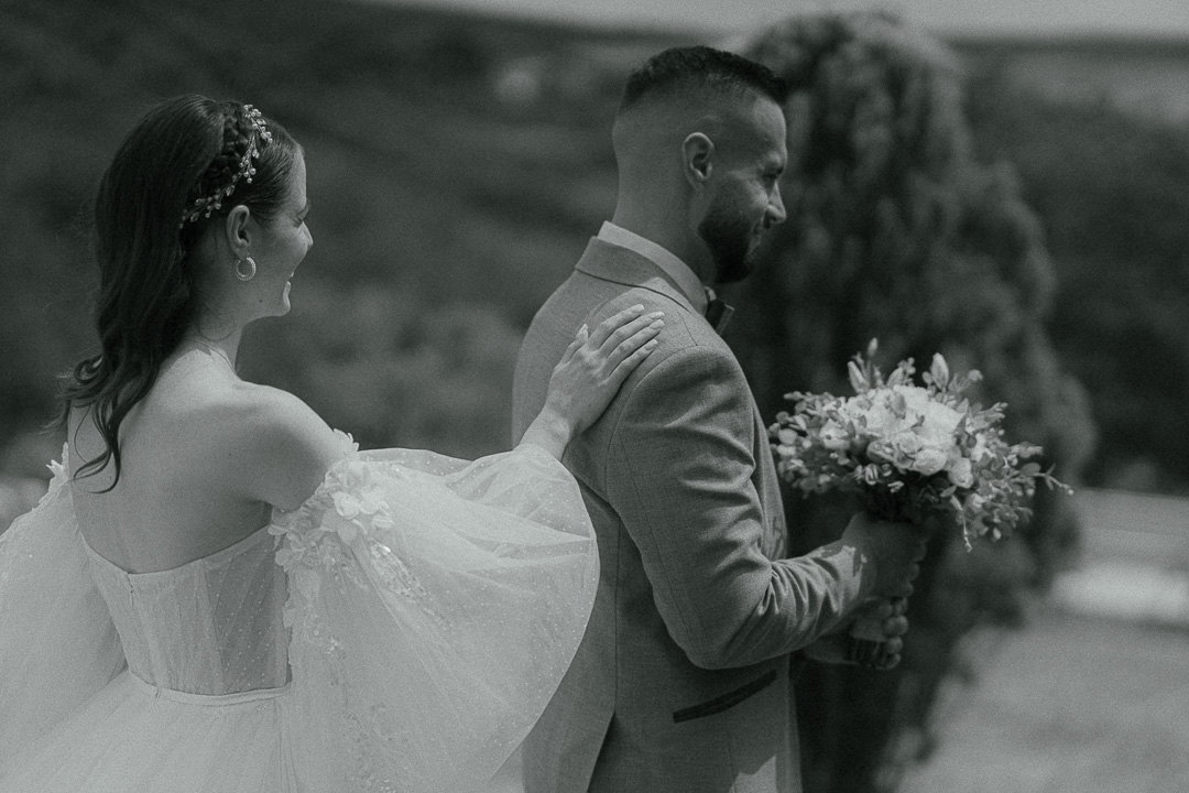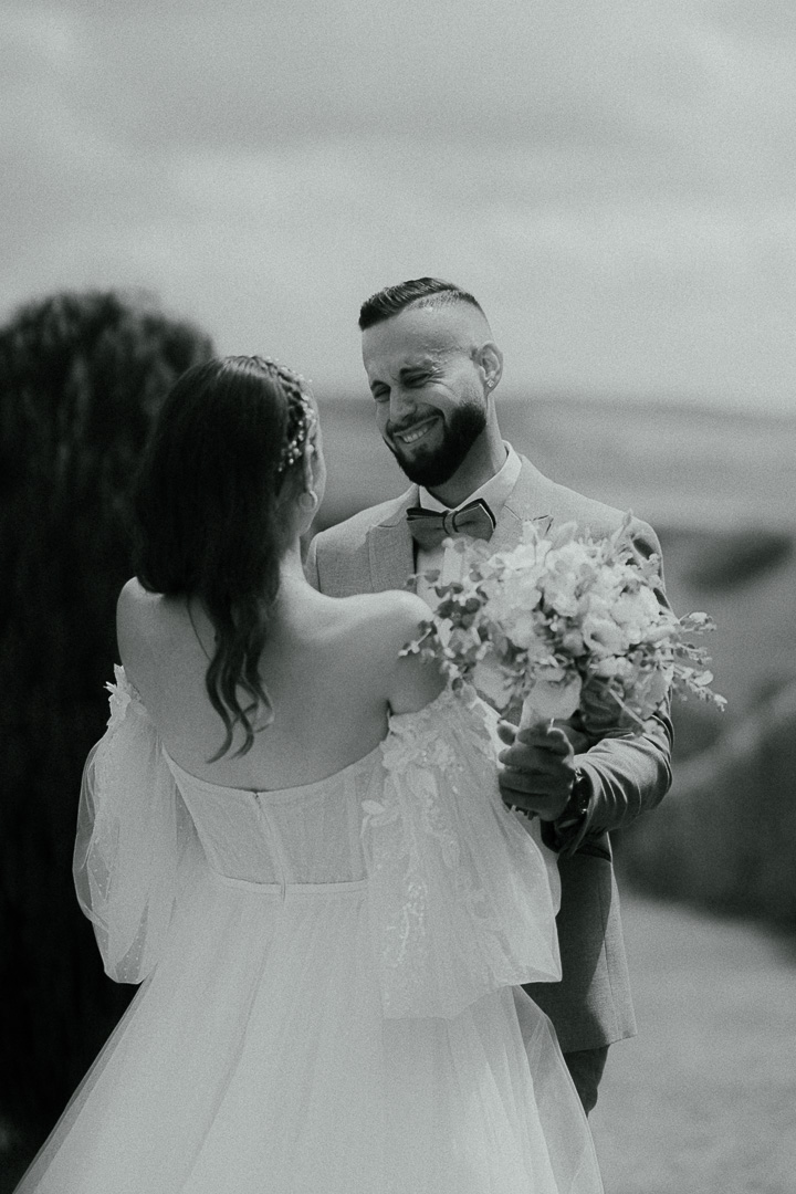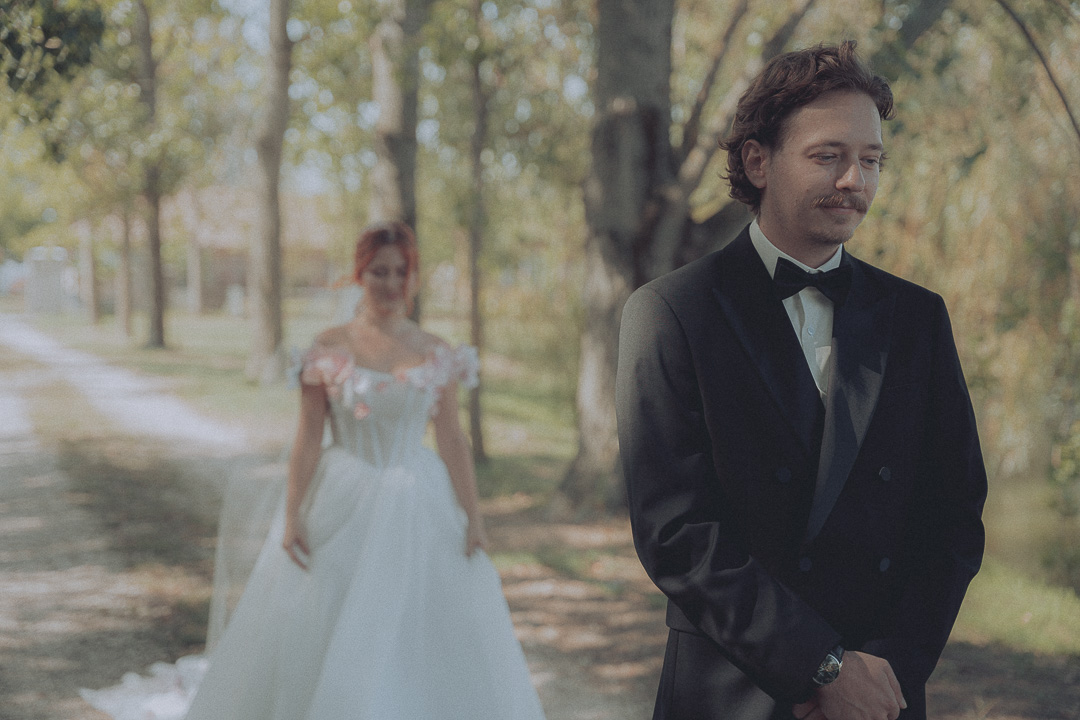 Felfoghatjátok egy bónusz kreatív fotózásnak is: Bár szakmailag mi mindenképpen a vacsora előtti, aranyórás fényeket preferáljuk, a first look utáni pár perc gyakorlatilag egy második kreatív fotózásként funkcionál. Ez egy szuper lehetőség arra, hogy a nap folyamán két teljesen eltérő helyzetben és környezetben is készüljenek rólatok páros képek.