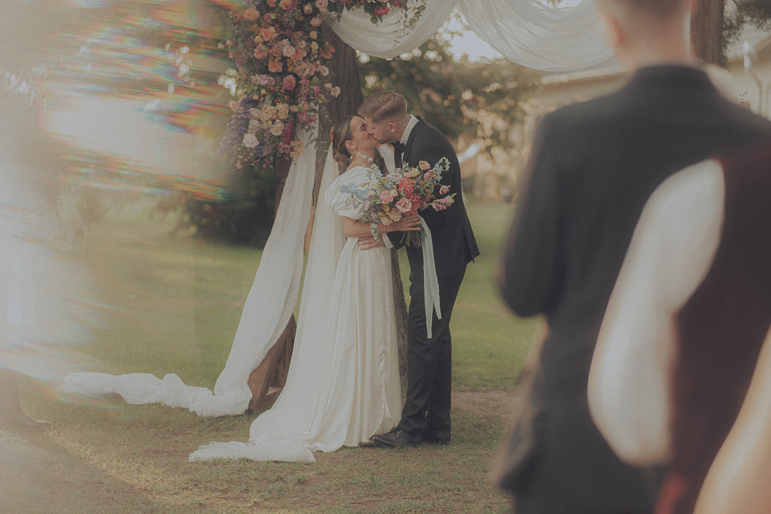 Így, hogy fotósként és grafikusként az életünket gyakorlatilag a vizuális kultúra különböző ágaiban éljük, mindig keressük azokat a tereket, ahol az esztétika nem csak a kiegészítőkben nyilvánul meg, hanem mélyebbről jön. A Kinfolk pontosan ilyen: egy játszótér, ahol a wabi-sabi (a tökéletlenség szépsége) és a mi fine-art szemléletünk találkozik. Itt a homogén színek és textúrák eleve egy olyan keretet adnak, amit nem kell virághegyekkel eltakarni, hogy "esküvői" legyen.