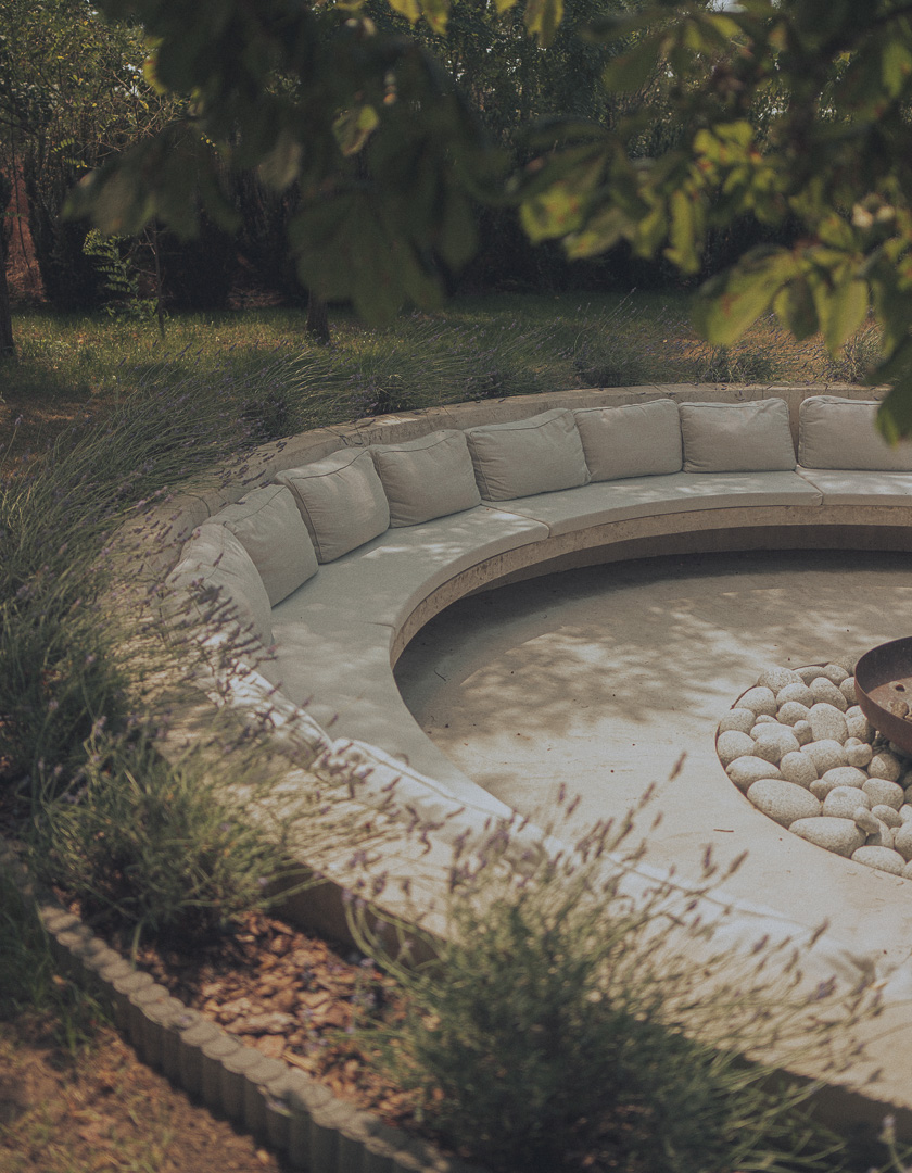 A tűzrakó olyasmi, amit itthon ritkán látni: letisztult, karakteres, sötétedés után a tűz ropogásával azonnal a társaság központjává válik. De az udvar lelke, az a tölgyfa. Ez a fa nem csak díszlet: hűvös pont a délutáni vendégváráshoz, és az ‘otthon’ érzés egy szabad ég alatti vacsorákhoz. Olyan dolog ez, amit nem lehet mesterségesen létrehozni, ehhez bizony kell az a 100 év.